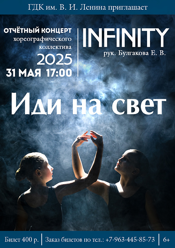 Городской дворец культуры приглашает на отчётный концерт хореографического коллектива INFINITY (рук. Булгакова Е. В.) 31 мая в 17:00.