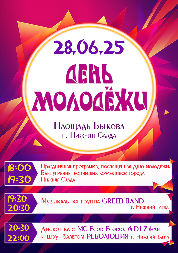 28 июня на площади Быкова с 18:00 до 22:00 состоится День молодёжи - 2025!